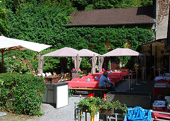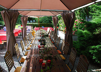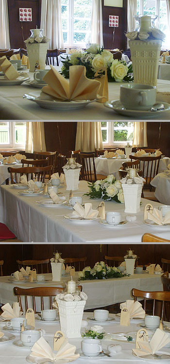 Biergarten - Wahlveranstaltung der SPD - 2009 Saal - Tische für Hochzeit festlich eingedeckt